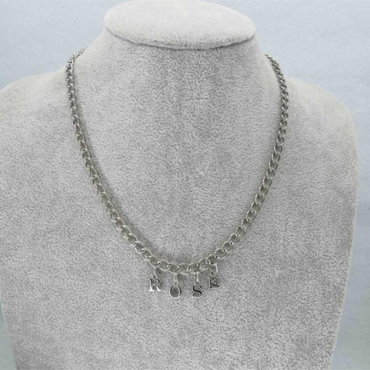 Gri Rose Yazılı Harfli Blackpink 45 cm Zincirli Hediyelik Kolye