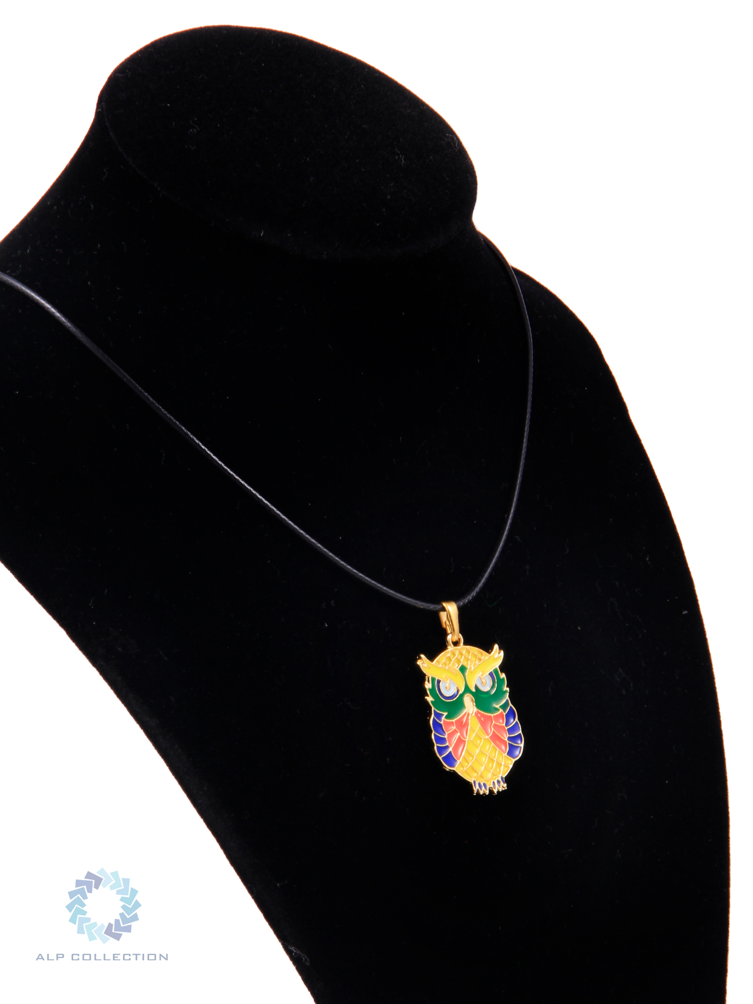 Altın Görünümlü Baykuş Desenli Mineli Suni Deri İpli Metal Kolye