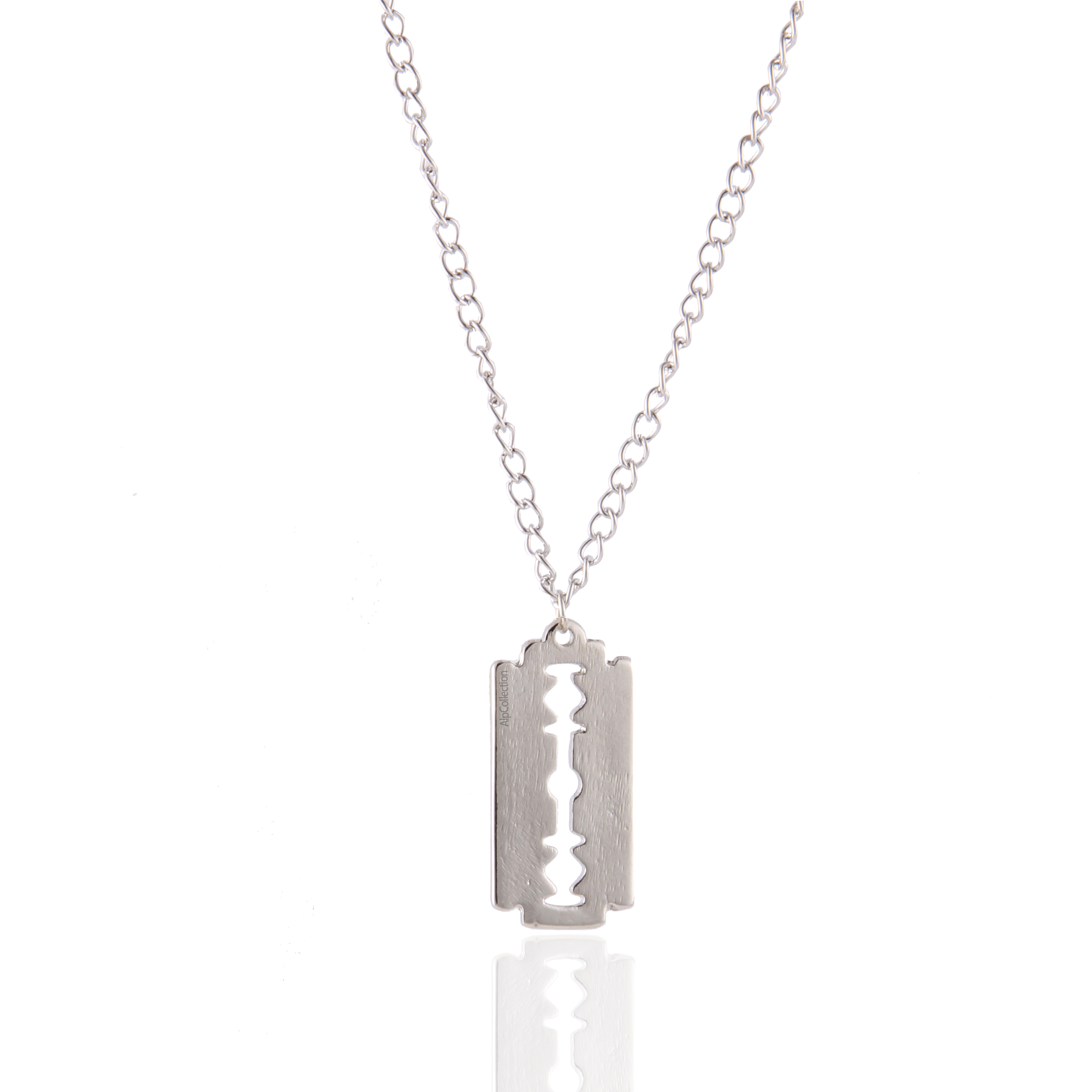 Gri Jilet Figür Metal Zincirli Kolye Takı Aksesuar