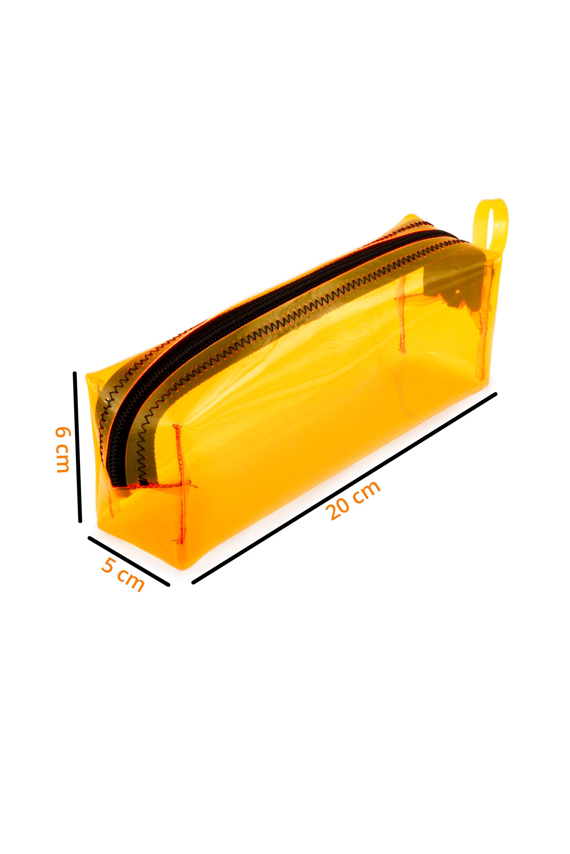 Siyah Fermuarlı Turuncu Renkli Kaliteli PVC Şeffaf Kalemlik Makyaj Çantası Kalem Kutusu