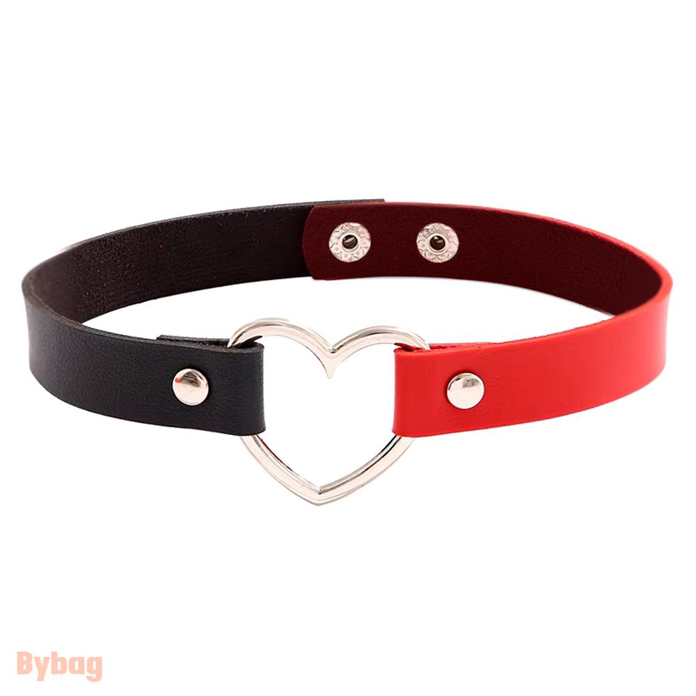 Siyah Kırmızı Deri Tasma Kalp 35 cm Choker Bayan Kolye Takı